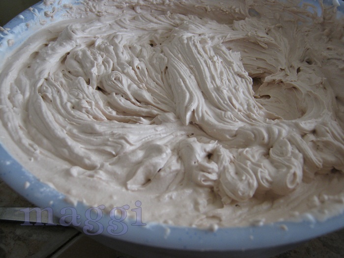 Сметаната разбих с миксер докато се втвърди, после добавих един по един от останалите продукти, като разбивах добре след всеки.